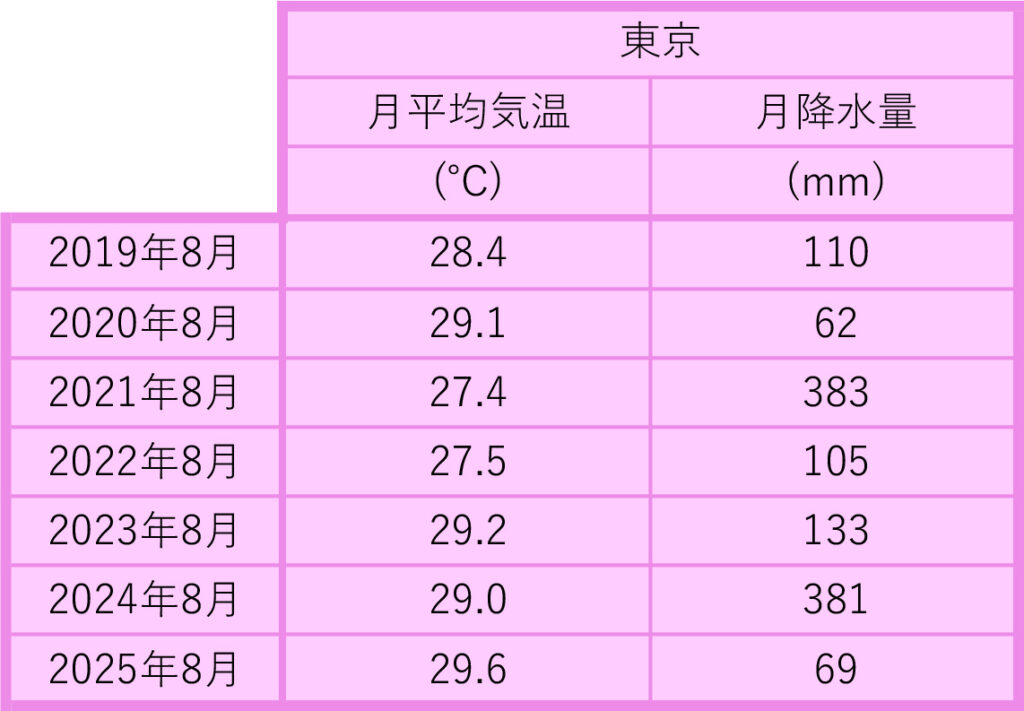 一方、東京では連日、猛暑日(気温が35℃以上となった日)が続くなど、異常な気温の高さを記録しました。特に直近3年間の8月は”常夏のハワイ”と比較して月間平均気温が1℃以上高い状態が続いています。