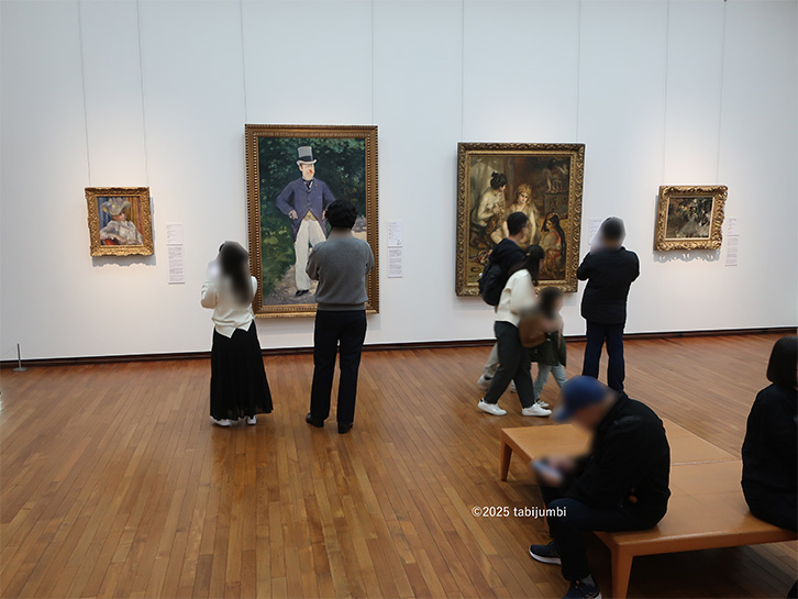 新館2階、吹き抜けの先にある展示室では、壁一面にルノワール、マネ、ドガの定番作品が並んでいました。