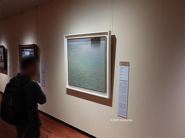 新館1階の絵画展示室にあったのは、グスタフ・クリムトの《アッター湖の島》(1901-1902年頃)です。個人や団体が所蔵する作品を国立西洋美術館が預かり、管理する寄託作品で、今回の常設展で初めて展示されました。