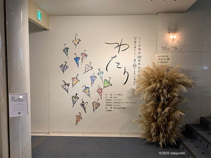 ここは東京メトロ表参道駅のB1出口のすぐ前にある複合文化施設「スパイラル」です。日本各地で受注会を開き、そこでオーダーを受けてから傘を作り販売する「イイダ傘店」の創業20周年を記念する展覧会「わたり」展が開かれていました。