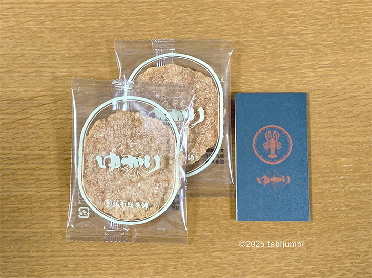 「ゆかり」ーーとは縦横が約6〜7センチのほぼ丸い形で 薄くて少し固いパリパリとしたエビせんべいです。