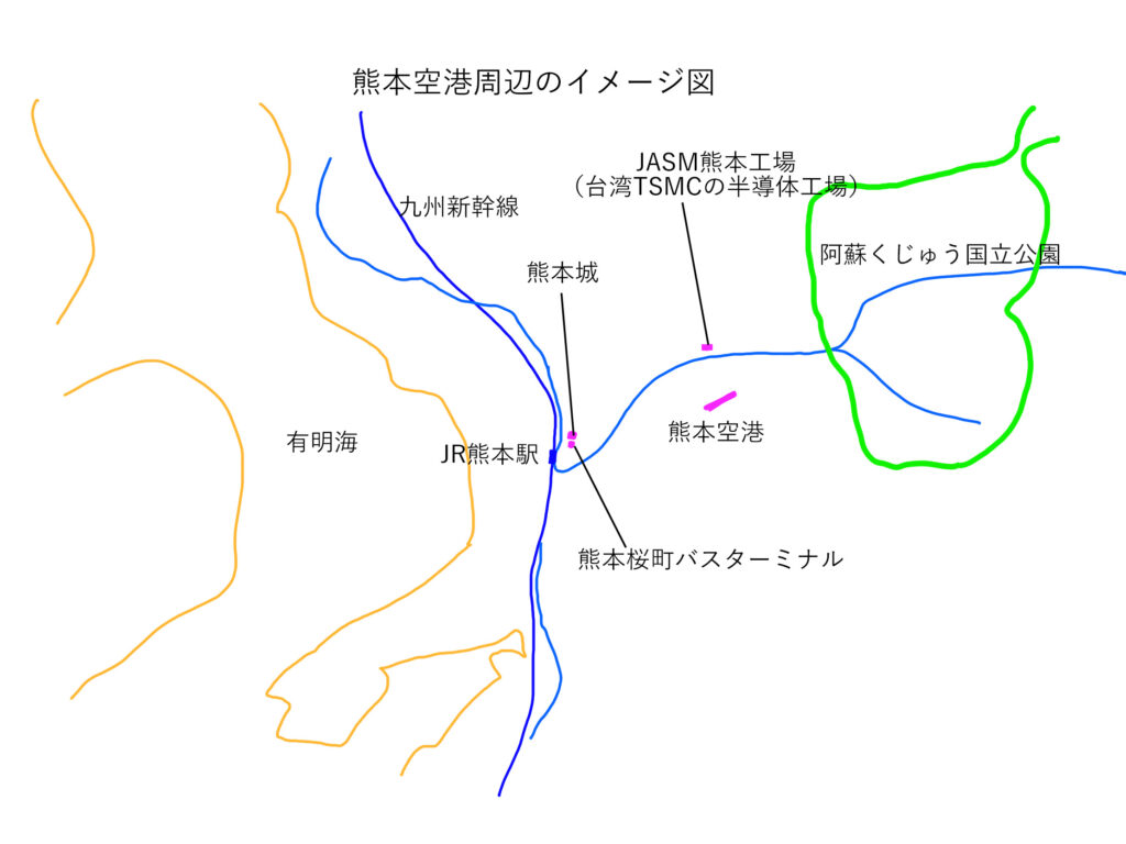 熊本空港の北およそ7キロメートルには「JASM熊本工場」があります。半導体受託製造で世界トップである台湾TSMCが日本に設立した製造拠点です。