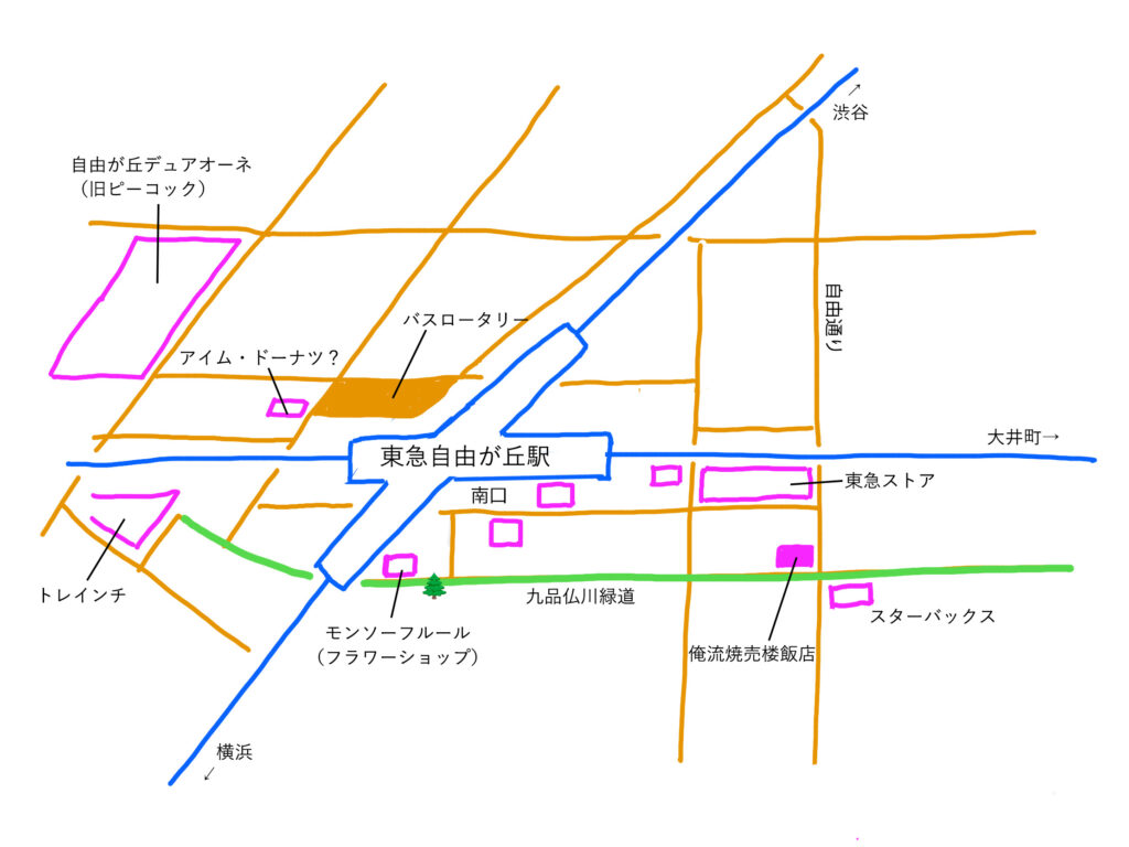 自由が丘駅南口から遊歩道になっている九品仏川緑道に出て、そのまま東方向に向かえば2~3分で到着できます。このあたりでは比較的自動車が通る自由通りとの角になりますし、スターバックスのはす向かいですので、間違って通り過ぎることはないと思います。