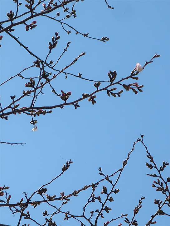 東急東横線中目黒駅よりも西側(大橋、渋谷方面)の様子です。全体として、まだ花を咲かせるまでにはなっていませんでしたが……